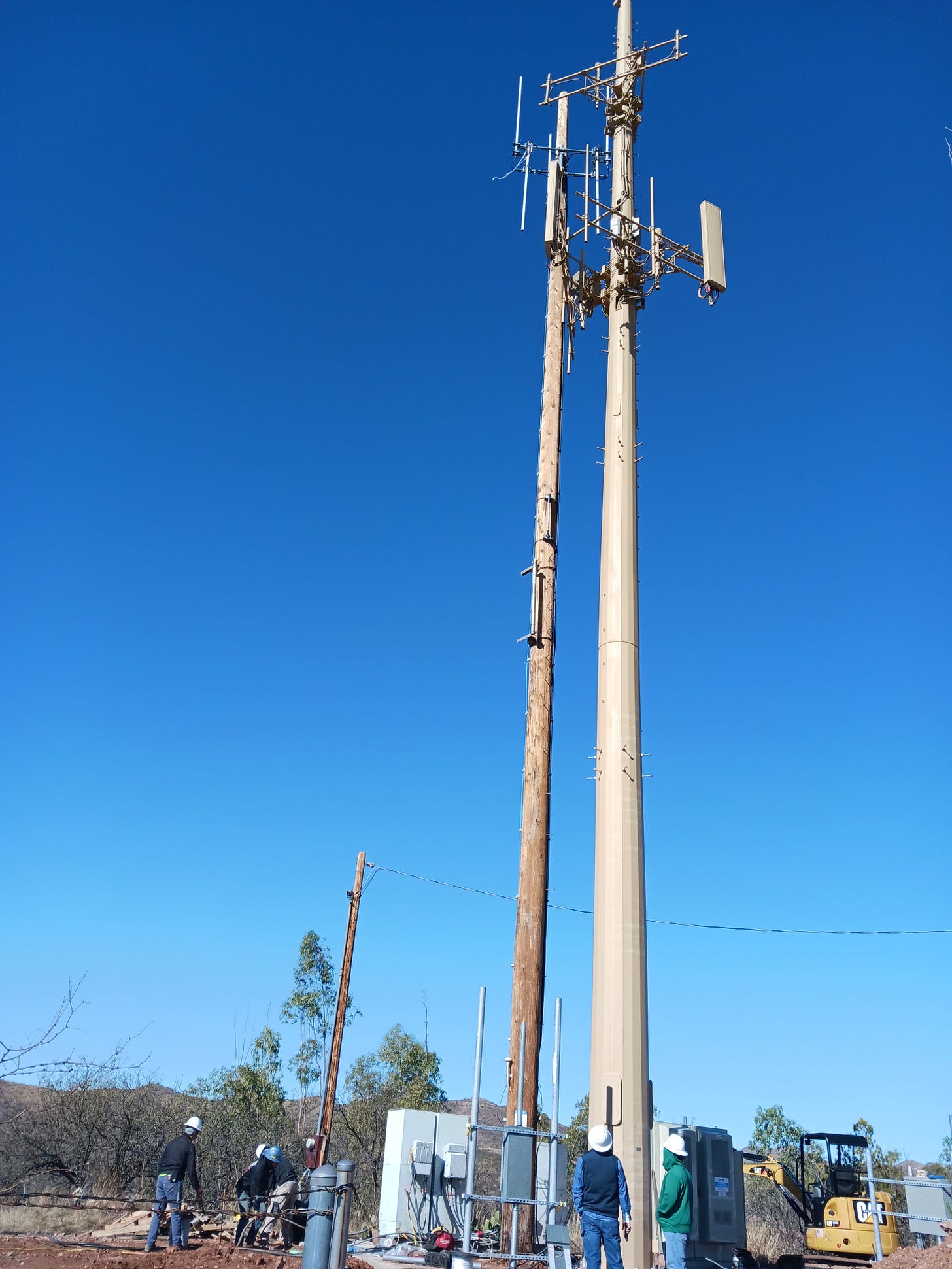 The installation of a new cell tower near my home is complete. The large wooden pole to the left is the old tower and was taken down the day after this photo was taken. The white box to the left of the old tower is an older Huawei computer unit. It was also discarded. The new AT&T computer box is on the other side of the guy in the green hoody. That box is the heart of all cell tower systems. The long, white rods are omnidirectional 5G antennas. The long rectangular boxes are phased array antennas. The combination of both on this new tower means this is a state of the art MIMO system (multiple-input, multiple-output). According to the foreman, either the anteanna above the 5G array or the dish (partially hidden by the array) have someting to do with goverment spying.