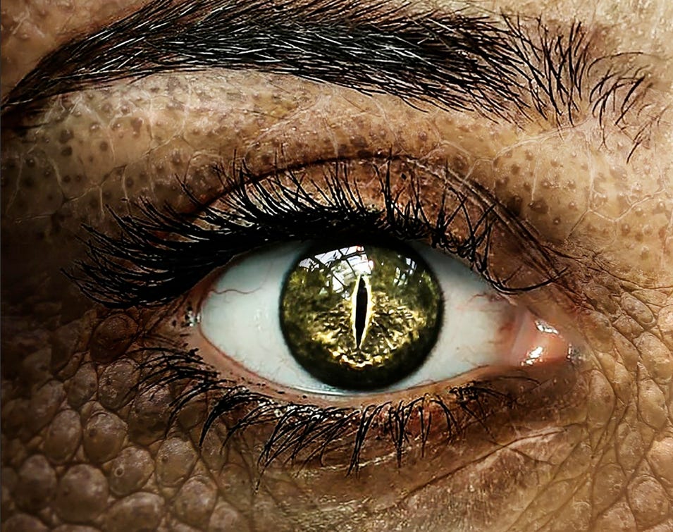 Lord Charon had watched Lord Erebos go through this transition process numerous times and knew that the substance enhanced deep and very sinister thought processes. He also knew that the red flakes were derived from a recent mutation of an extremely rare mushroom that had been found growing in the dung of a few Komodo Dragons that lived in an area of that Indonesian island that, ten years earlier, had been contaminated by illegal dumping of thousands of liters of unwanted mRNA vaccine test material. The seals had long ago broken and the contents had been leaking out into the Dragon’s ecosystem. Being an apex feeder preying on both live prey and carrion, the Komodo dragons in this area had accumulated an excessive amount of the mRNA material within their bodies. This caused a mushroom long associated with the Komodo dung to mutate into the strange, toxic, red cap mushroom that was now transforming Lord Erebos into a more evolved reptilian state.