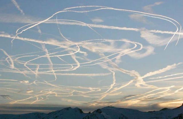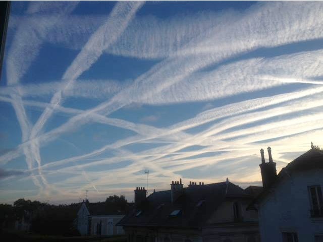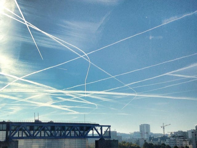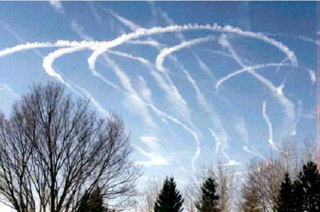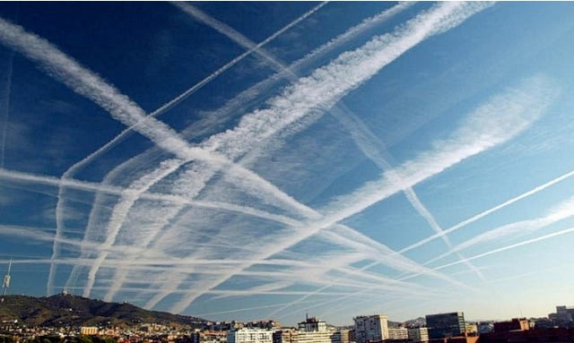 What follows are photos of SAI’s from around the world. It’s readily apparent that these are not “contrails being emitted by commercial aircraft”. Commercial aircraft want to fly the shortest, most economical route between point A and B. That’s clearly not what’s happening in these photos.
