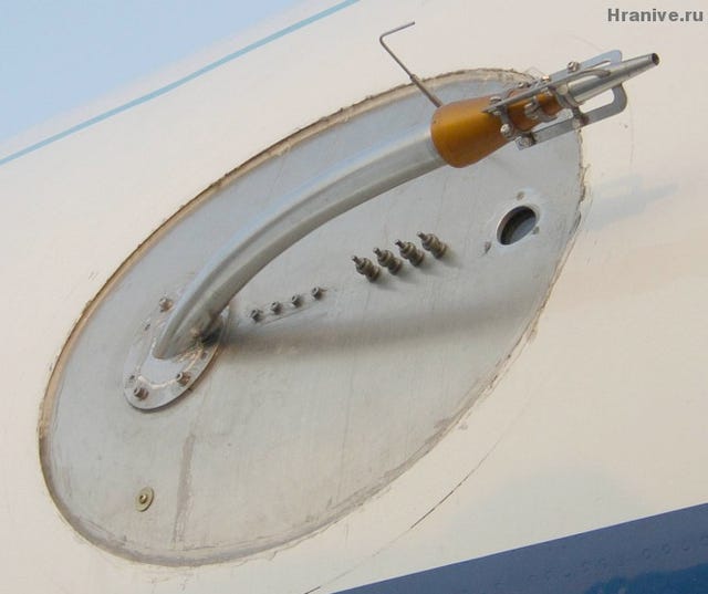 In the previous post I explained how the planes are outfitted with exterior nozzles on the wings that are fed by tanks mounted in the cargo bay. As the following two photos show, the nozzles can also be mounted on the body of the plane.
