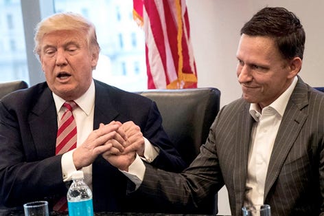 Thiel made JD Vance. He gave Vance $15 million (a record) to win his Senate race. When Thiel says jump, Vance says, how high.